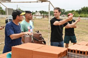 Mantegazza, Sileoni y Urquiza, acompañados de los funcionarios Eleonora Vázquez, Claudia Godoy, Leonardo Lafflito, Fernanda Bárcena y Mariana Meza, recorrieron la obra en construcción de 4 aulas de la nueva escuela y donde compartirá predio y comedor con la Escuela N°501, permitiendo ello ofrecer y garantiza más y mejores servicios educativos para la comunidad.